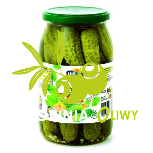 Składniki: Ogórki, woda, ocet spirytusowy, cukier, sól, przyprawy, gorczyca - substancja alergenna.